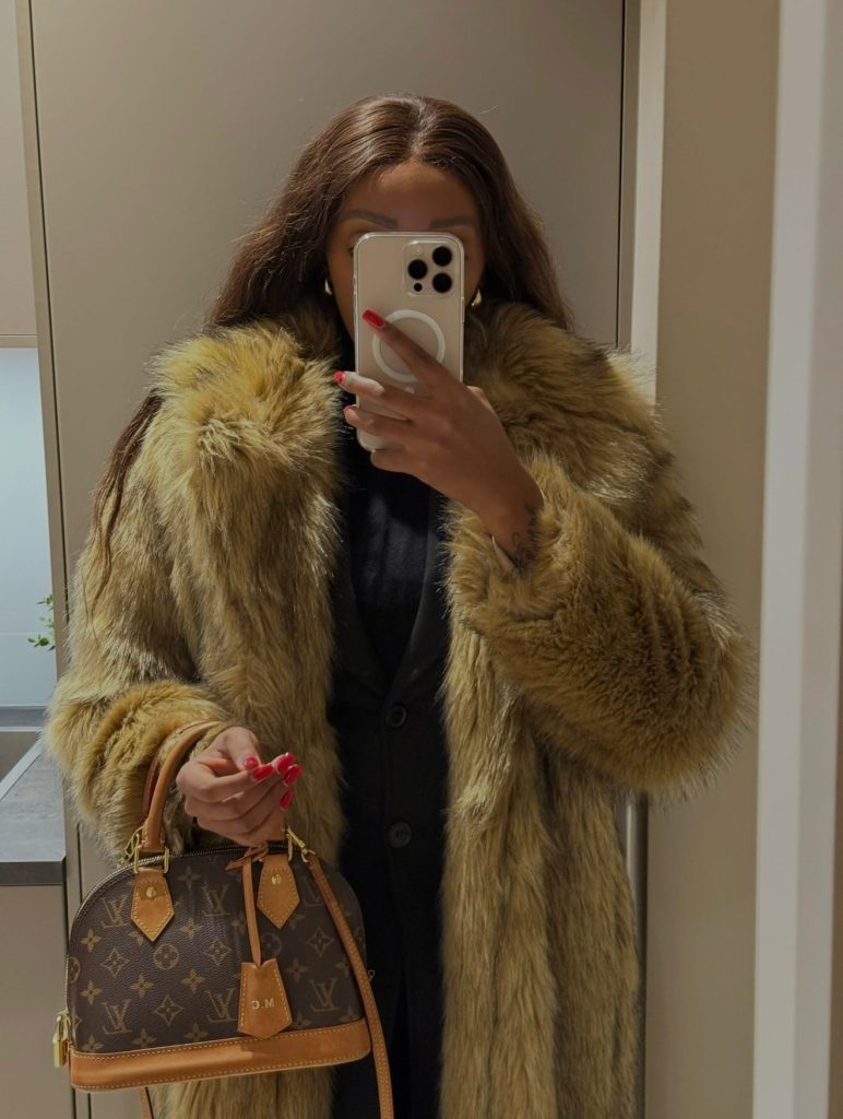 Instead of a classic wool coat, I rotated between two very over-the-top faux fur coats. One long and dramatic, and one shorter but just as bold. They were warm, eye-catching, and definitely leaned more statement than Stockholm minimalism… but I loved them anyway.