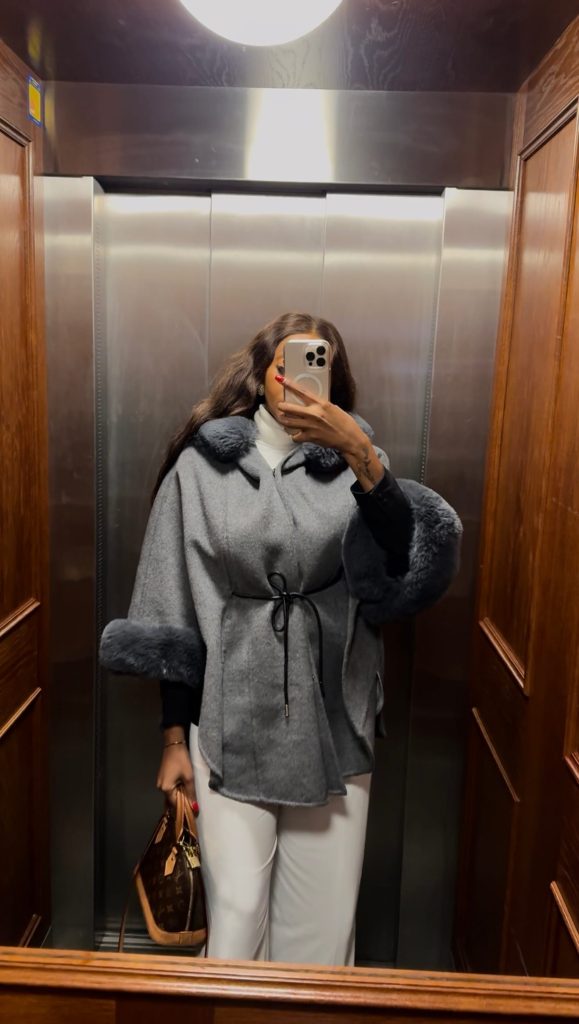 I also layered structured knits and well-cut outerwear underneath, including an elegant grey cashmere poncho. While beautiful, I’ll admit it wasn’t warm enough on colder days. A classic case of choosing cuteness over practicality